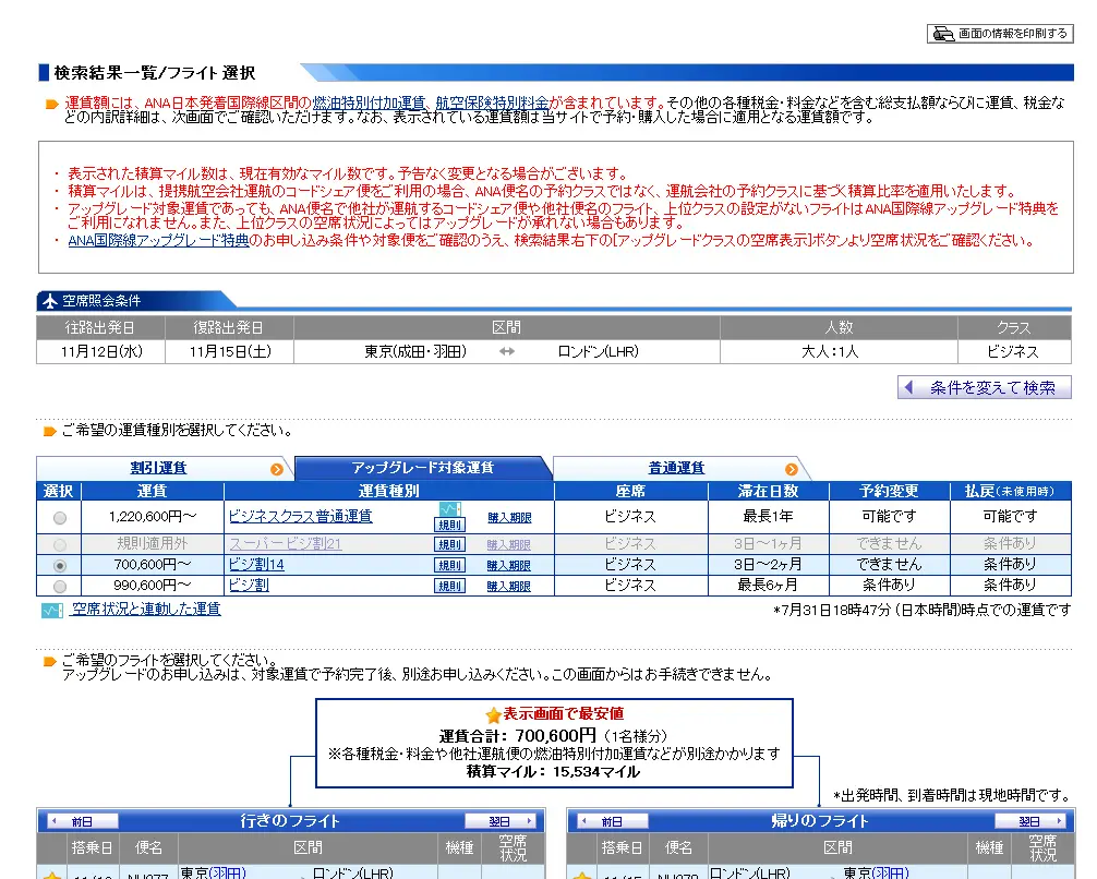 そこで「ファーストクラス」とまでは行かないけれど、快適に航空機を利用できる「ビジネスクラス」を見積もりしてみました!