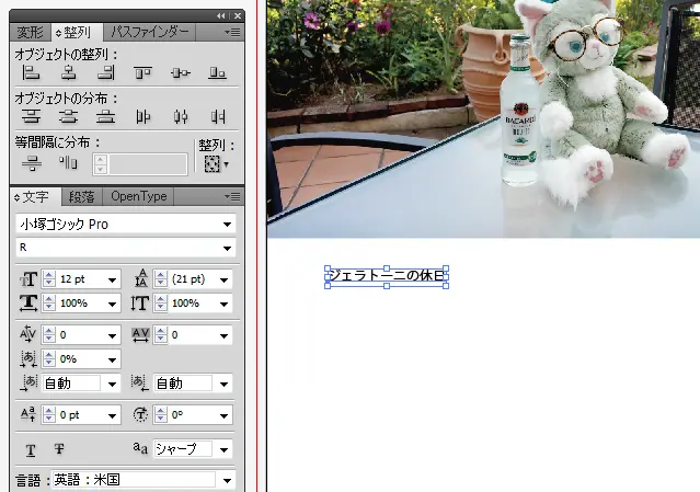 この要領で、同じように「選択ツール」と「テキストツール」を使いこなして文字を配置します。