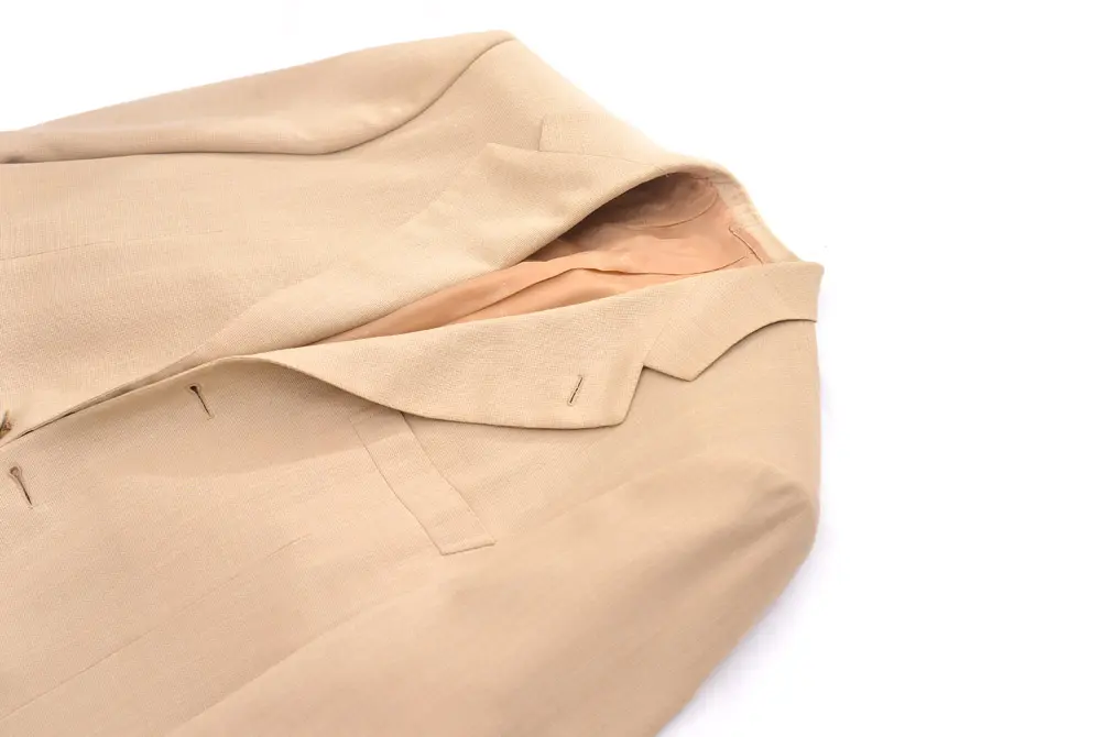 実際のところ、軽い着心地というのは非常に実現が難しいものです。というのも、肩から背中に掛けて重さを均等に分散すること、また動作を妨げない立体的な作りにすることによって初めてそういった着心地の軽さができる。安い普通のマシンメイドのブランドにはそれができません。できないからこそ、やたらとアンコンのジャケットを出して、安直にジャケットの「重量」を軽くしているんですね。