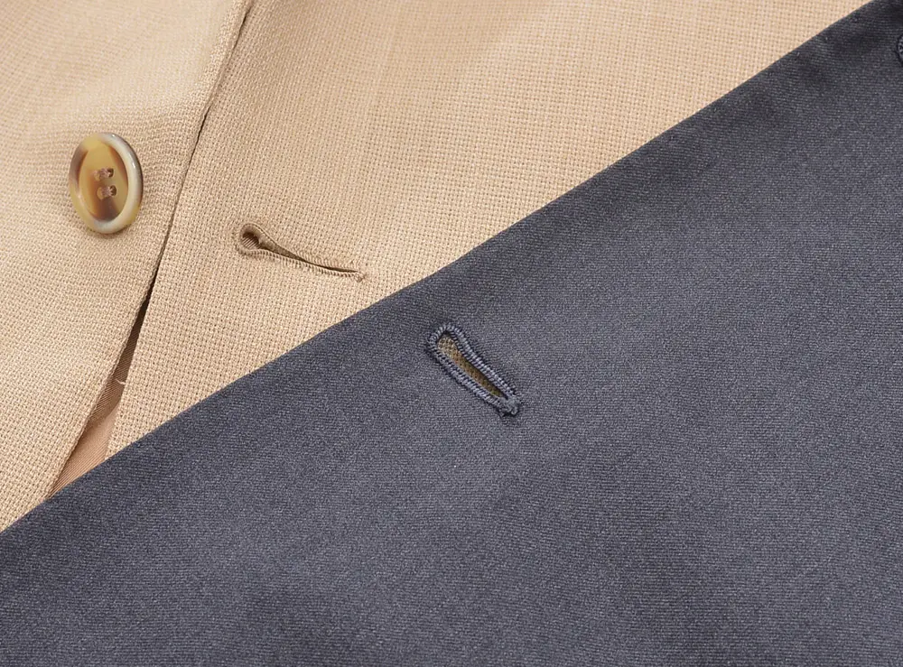 さて着心地の違いを感じた後、改めて二つのブランドのジャケットを比べてみると今度はボタンホールに目がいくでしょう。この位高級なブランドになるとボタンホールというのは全て手縫いによって施されるので、その分ブランドの実力と方向性が非常に良く現れますね。