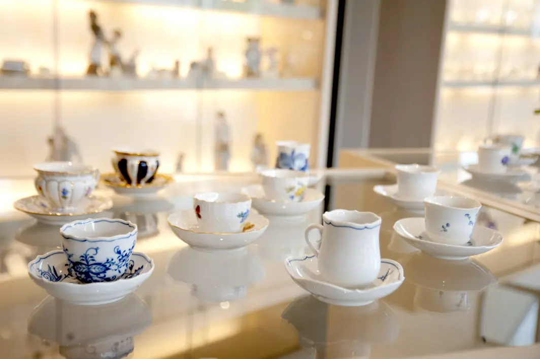 マイセンマークVIP、波の戯れ、ブルーオニオン、アラビアンナイト(1客30万円)まで。