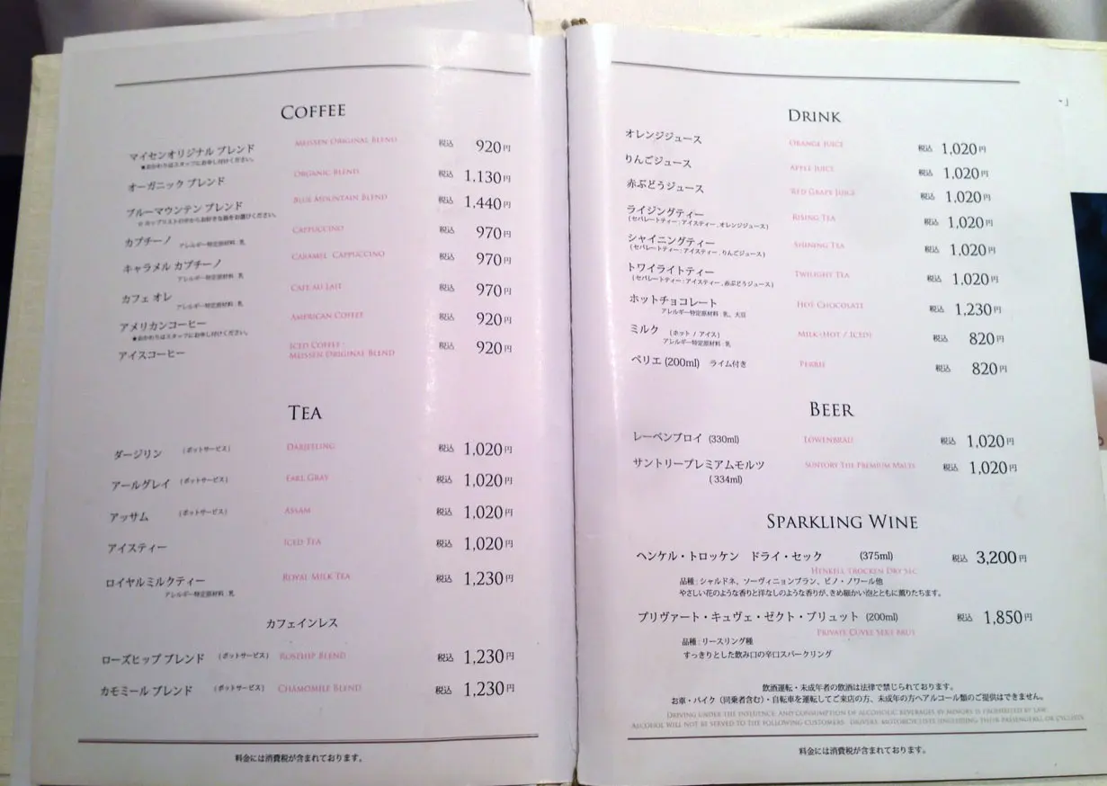 早速メニューをいただくと、「うん!こんな感じだよね!(値段)」と一人無言でうなずきました。