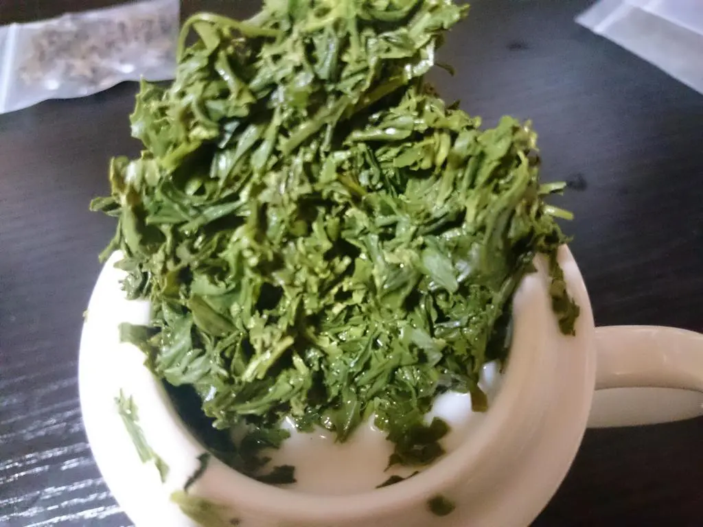 少し海藻系のグリニッシュさが入る。茶葉は茎入り。香りは葡萄にも似たフルーティーな香り。軽めのボディだけど軸はしっかりしている。余韻は強め。ミドルノートから上質な感じの渋味の存在感が増してくる。
