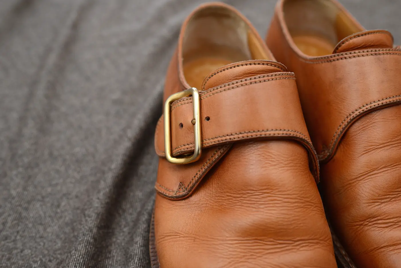 ベルトで止めるタイプの革靴、モンクストラップはジャケパンスタイルに大人っぽい色気を付け足してくれる靴です。もともと修道士が履いていた靴を元にしているため、モンクストラップと呼ぶのだとか。