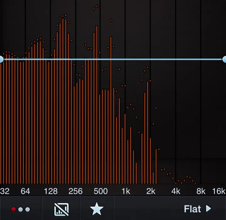 例えば下のイコライザーの特性でいくと、32hz〜16khzまで特出しない傾向のものです。