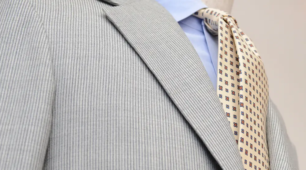 例えばライトグレーのジャケットに、ブルーシャツの着こなし。これは非常に洗練された着こなしですが、ある人々はここにクールさを加速させる紺やスティールグレーのネクタイを締めるでしょう。
