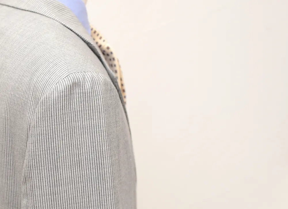 ちなみに肩はもちろんのこと、ジャケット全体に言えることですが、リヴェラーノ・リヴェラーノは極薄の柔らかい芯地のみを使用して、非常に軽やかな仕立てにしていますね。