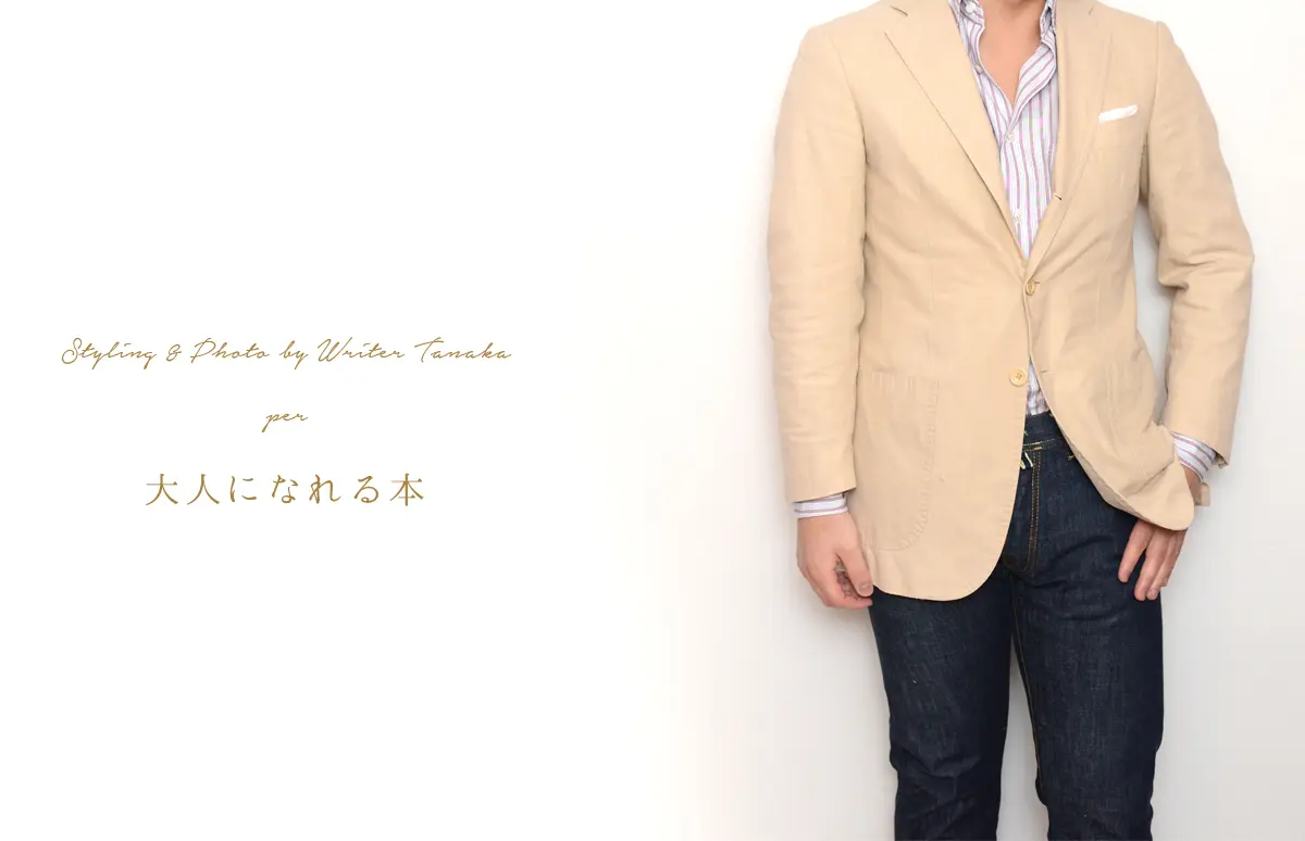 というのも個人的にはレストランに食事に行ったり、20代の同窓会に行ったりするときにウールのグレースラックス+紺ジャケットという着こなしでは、流石に畏まりすぎているのでは?と思いうのです。そういった着こなしはもちろん押さえておくべきスタイルですが、そこは「楽しむこと」をもう少し全面に打ち出しても良いと思います。
