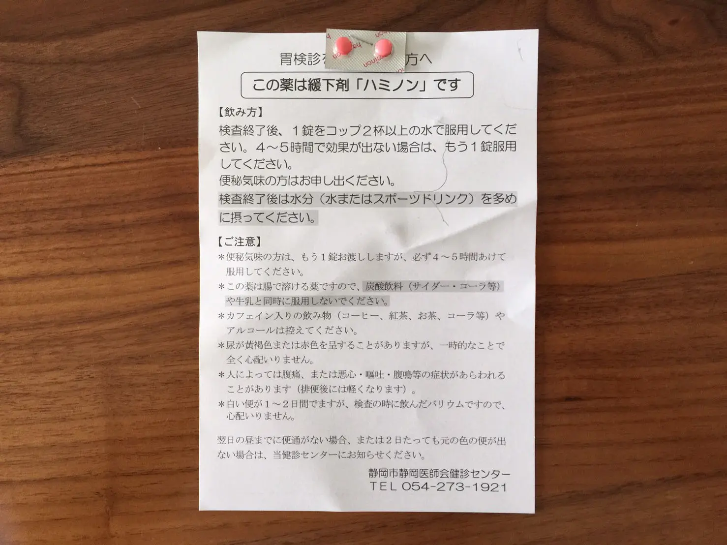 検査が終わるとすぐに下剤を飲まされます。ところが異物感が強すぎて、トイレで吐いてしまいました。半分くらい出て気分は少しマシになったものの、吐く人は珍しいらしく、技師さんに「おいおい…」という目で見られました。