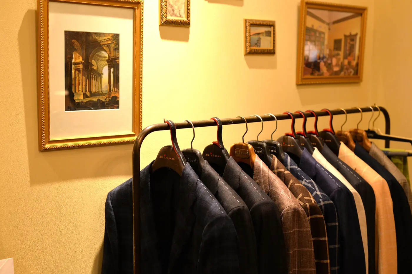 まずジャケットやスーツは、キートン。それもSUPER 180’sウールやカシミア100%などの極上の生地を使ったものだけを扱っています。