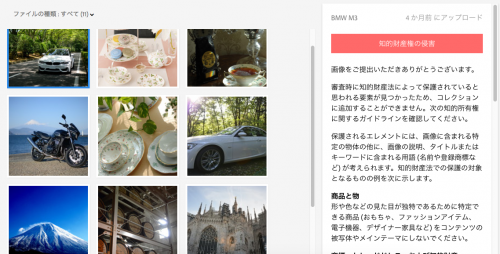 とりあえず手元にあった写真(全て自分で撮ったもの)をアップロードしたのですが、半分くらいが不採用になりました。