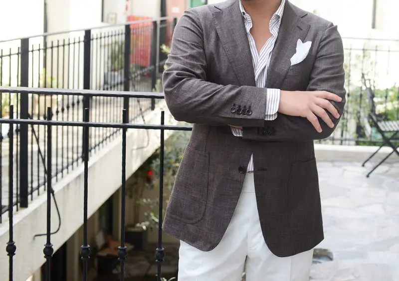 普段Stile Latino スティレラティーノを着ており、アットリーニやキートンには中々手が届かないけれど、そういった手縫い感を体験してみたいという人にはちょうどぴったりのブランド。
