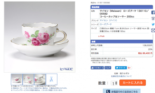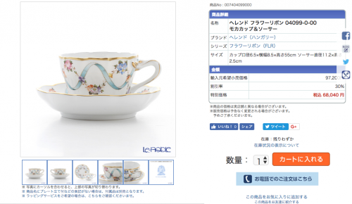 マイセンのお花シリーズは何十個もあり、一つずつ絵柄が違うので、実店舗で選んで買うのをお勧めします。