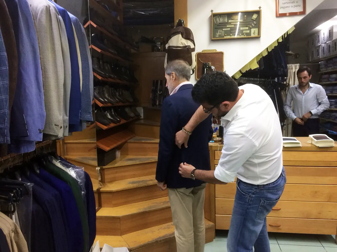 しかしその一番の理由は、この既製服がナポリで最も美しい仕立てであり、そして素晴らしい生地を使っていることです。