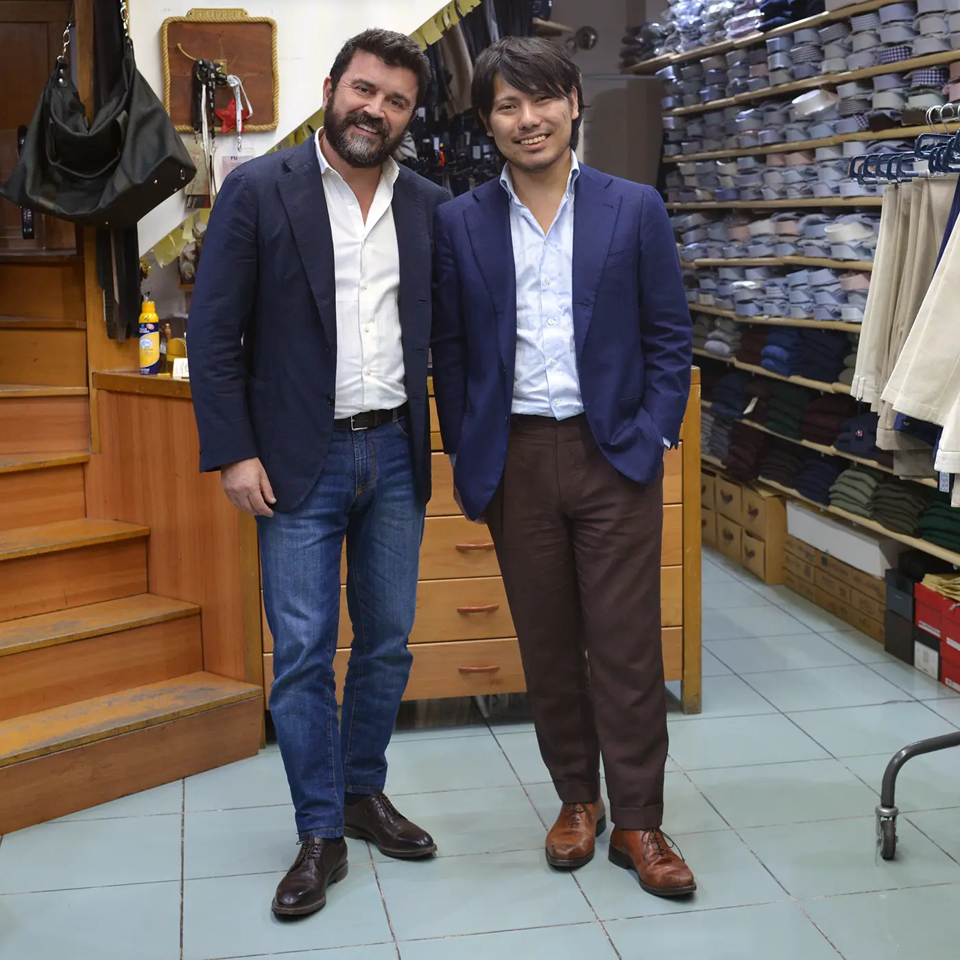 某ブートニエールが大人気のブランドや、某カシミアに洗いをかけたブランドなどに始まり、今は特にナポリ発と言われる既製服ブランドが大人気となっていますね。