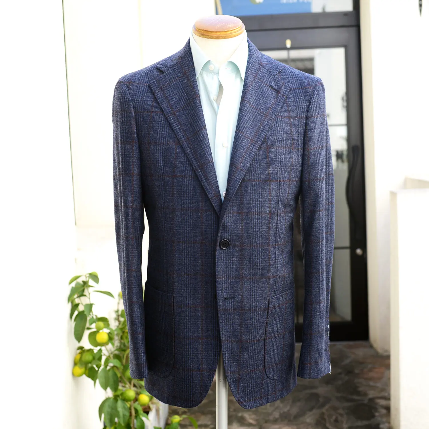 特に肩周りのフィッティングはサルトリア・ナポレターナだけがなせる技です。そこからすらりと伸びる袖、ラペルの自然なロールと滑らかにつながるフロントカーブ。