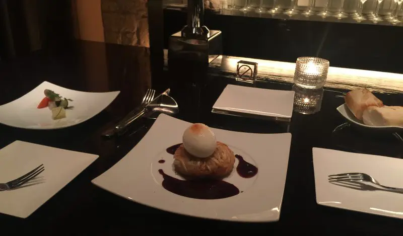 その後にフードのメニューが来るのですが驚いたことに料理の種類が多く、肉料理などしっかりと食べるれます。じゃがいものガレットとピクルスなど頼んだのですが、どれもホテルのフレンチで出てくるような本格的な仕上がりで、ソースや盛り付けも完璧です。食べていかないと勿体無いと思える程でした。