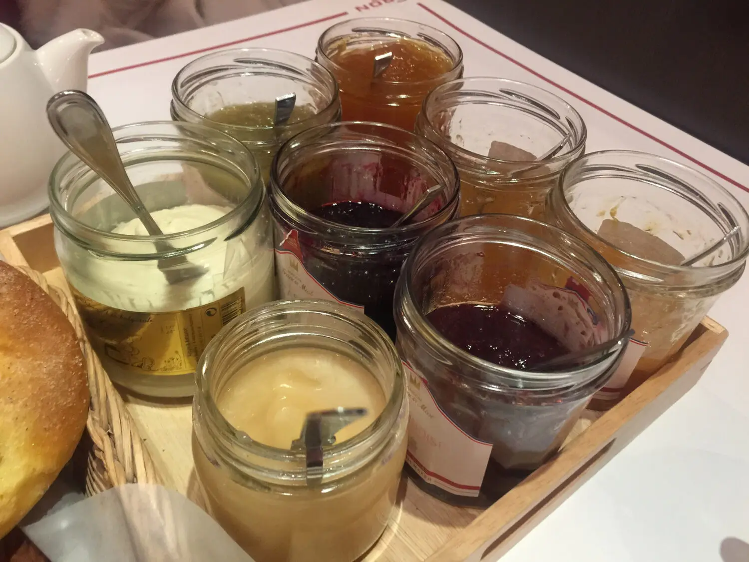 ジャムの種類も豊富です。クロワッサンやデニッシュ系がサクサクで気に入りました。しかし、唯一の難点は甘い物が主体で、しょっぱい物が食べたくなります。