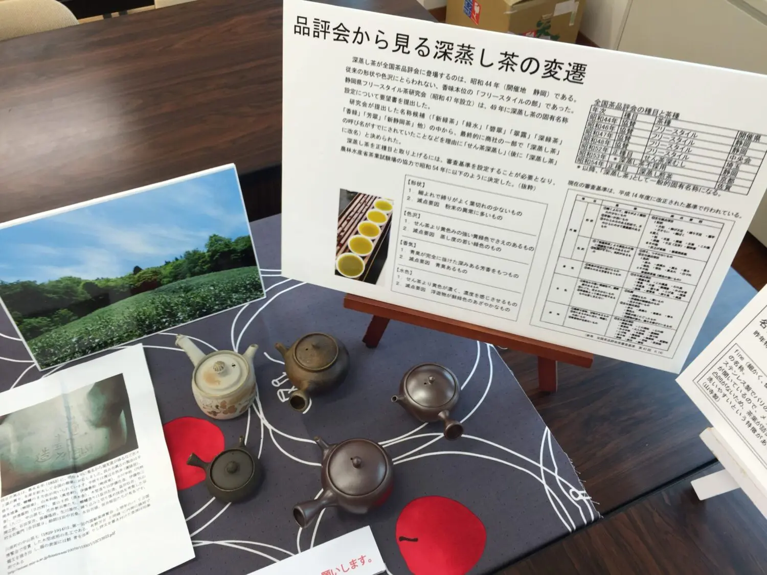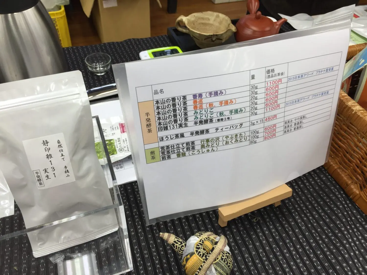 飲み手も日本茶通で、写真にある「安倍の百年茶」「日本平手摘みやぶきた」「足久保蒼風」など軽々とテイスティングで分別できる人ばかりです。「静印雑131」を見るだけで静岡茶とインドの交配種だという事も分かりますし、蒼風や藤かおりに似た品種だということも理解しています。茶手揉み保存会に至っては、お湯ではなく茶葉を水で浸して透明なまま飲むことを強要されますし、茶殻を食べないと立ち去ることさえできません。静岡にはタカ派(強硬派)が根強く残っているのです。