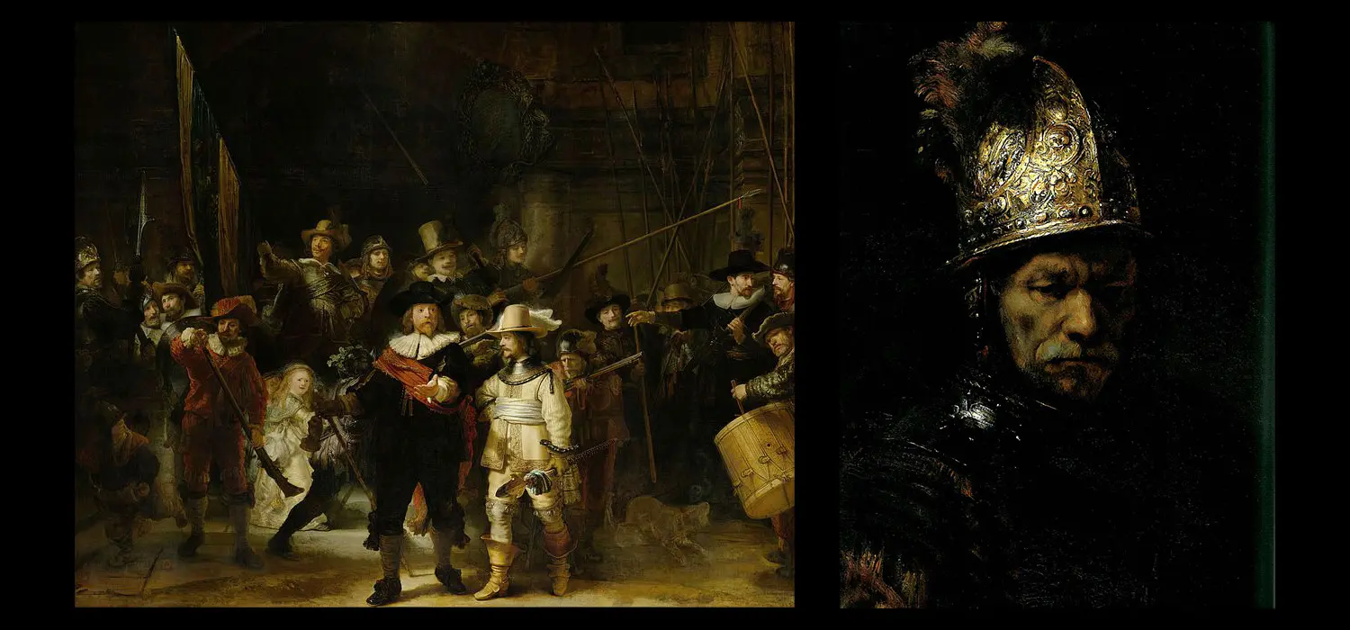 レンブランドと言えばご存知の通り、ネーデルラント連邦共和国(現オランダ)に生まれた光と影の明暗を特徴とする画家です。肖像画を主体としていますが黒く静まり返った舞台から今にも動き出しそうな躍動的な描写を見せます。この技法はミケランジェロ・メリージ・ダ・カラヴァッジオから影響を受けたキアロスクーロ(Chiaroscuro)という技法で、イタリア語で「明-暗」を意味する一方向から差し込む光を光源として段階的な陰影を付け、対象物を浮かび上がせるところにあります。レンブランドはバロックを代表する画家ですが、この時代は細部に渡る描写技法、豊かで深い色彩、強い明暗法を特徴とします。