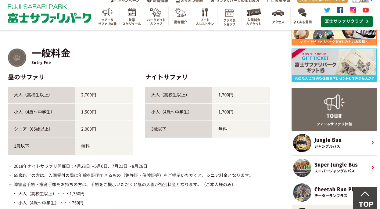 シニア(65歳以上) 2,000円 3歳以下 無料