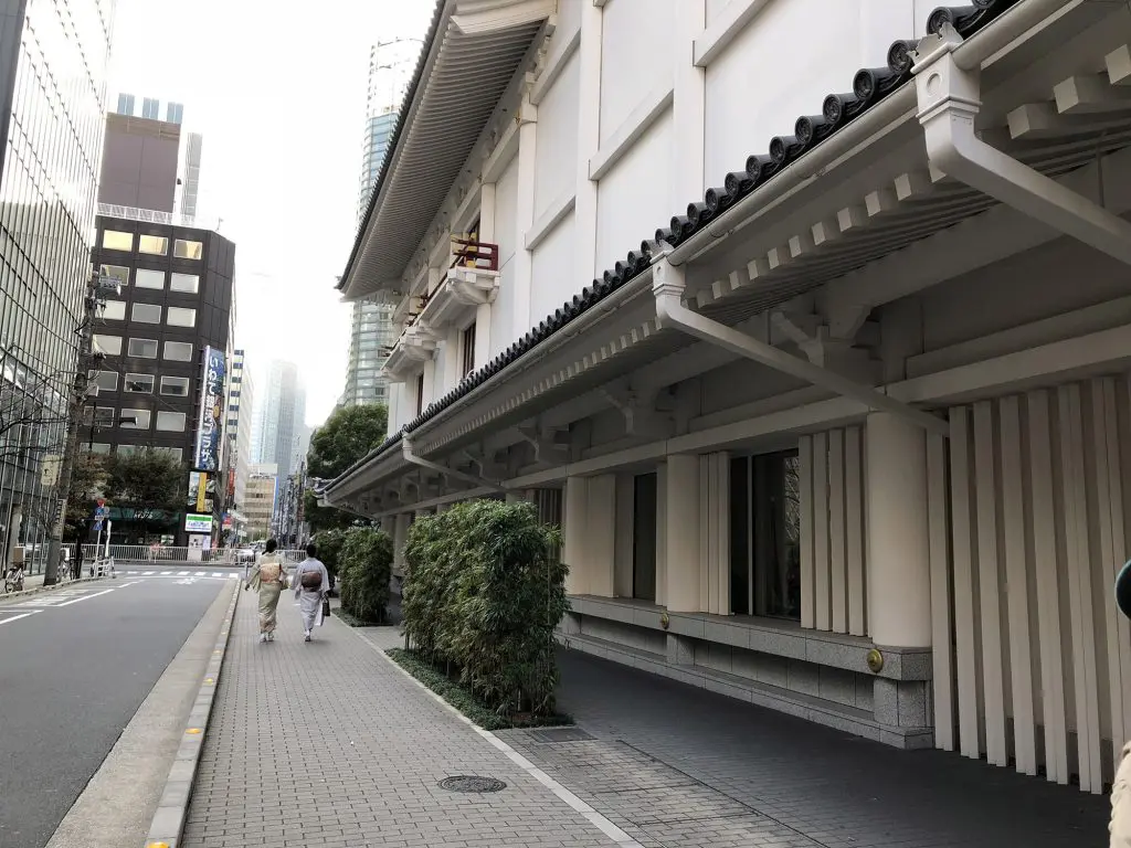 歌舞伎座の真ん前に「鯛めし」と旗がなびいています。