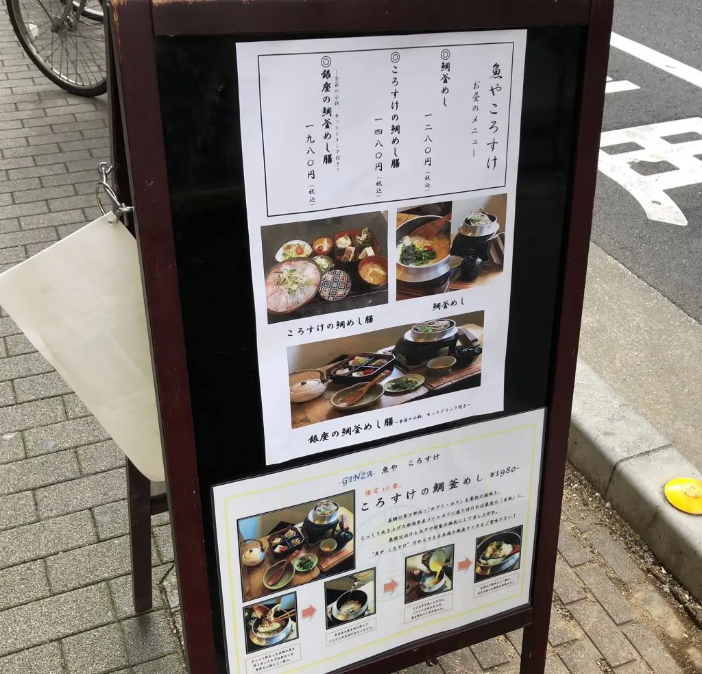 歌舞伎座近くをウロウロして、気づいたらもう午後2時…。なんかお腹へったから食べたい!と思って歩くと目の前に鯛めし屋が!