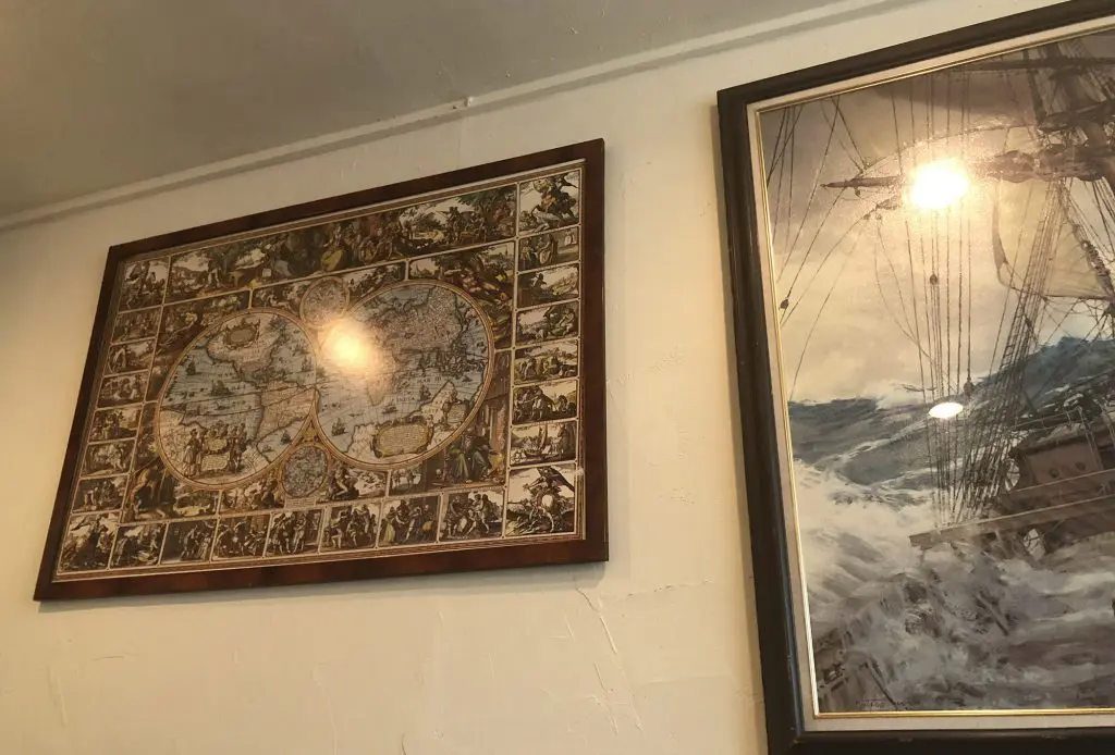 シーマンズクラブ?の名残りなのか、魚やを意味しているのか航海に関係するようなイラストが飾られていて、謎のカフェのような状態になっています。