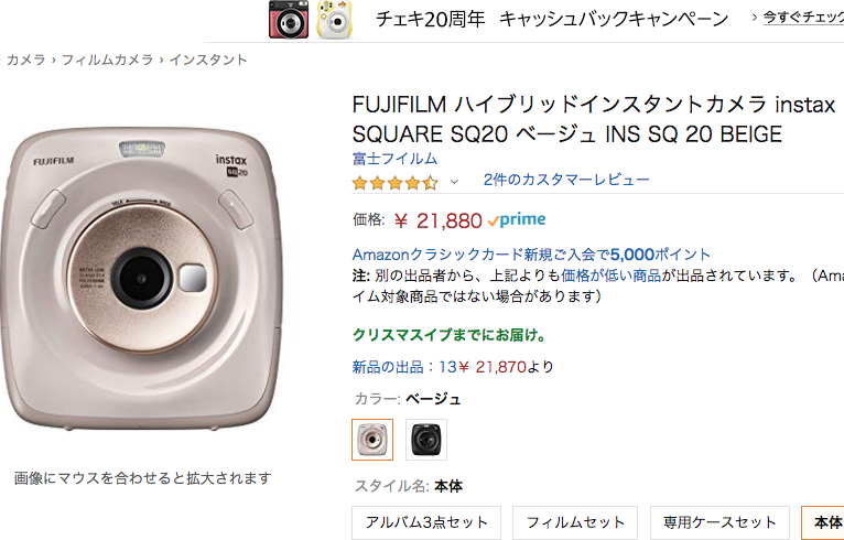 FUJIFILM ハイブリッドインスタントカメラ instax SQUARE SQ20 ベージュ INS SQ 20 BEIGE
