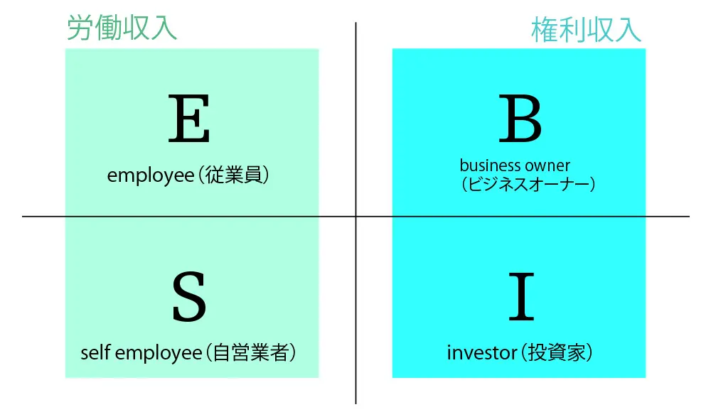 ロバート・キヨサキ氏が提唱した「キャッシュフロー・クワドラント」の考え方では、収入の得方を以下の4つに分類します。
