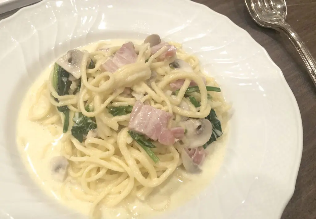 そこに茹でたパスタと、少量の茹で汁を追加すれば完成です。しょっぱくなりがちなので、塩加減を控えめにしておき、塩見が足りなかったら、皿の上で追加する方法でも良いはずです。