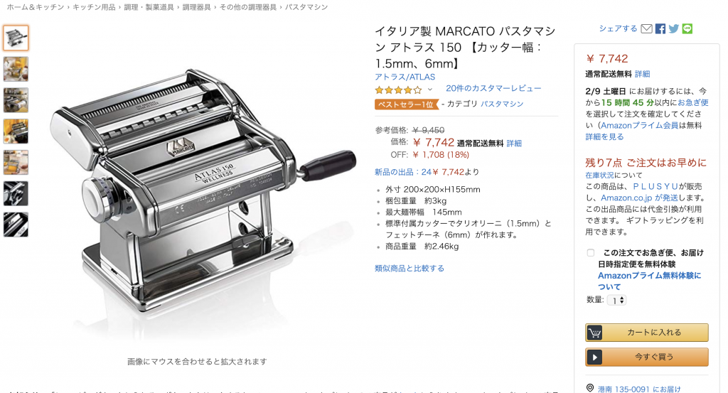 こんなに美しいのにわずか7千円というのが驚きです。料理やパスタが好きであれば絶対に持っていたい一台です。