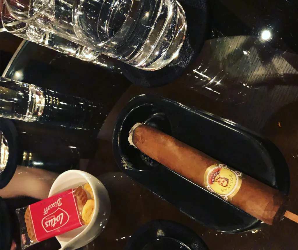 食後に蒸留酒でゆっくりするには葉巻は絶対に欲しい。シガレットなんてのは恥ずかしく低俗なので隠れて吸うべきだ。時間を掛けて香りを楽しむのであれば、キューバ産のパルタガス セリーD No.4なんかがお勧め。チョコレート、小粒のチェリー、レザー、ホワイト ペッパーなど複雑な香りが長続きする。ホワイト・シダーの葉巻用マッチを忘れてはならない。