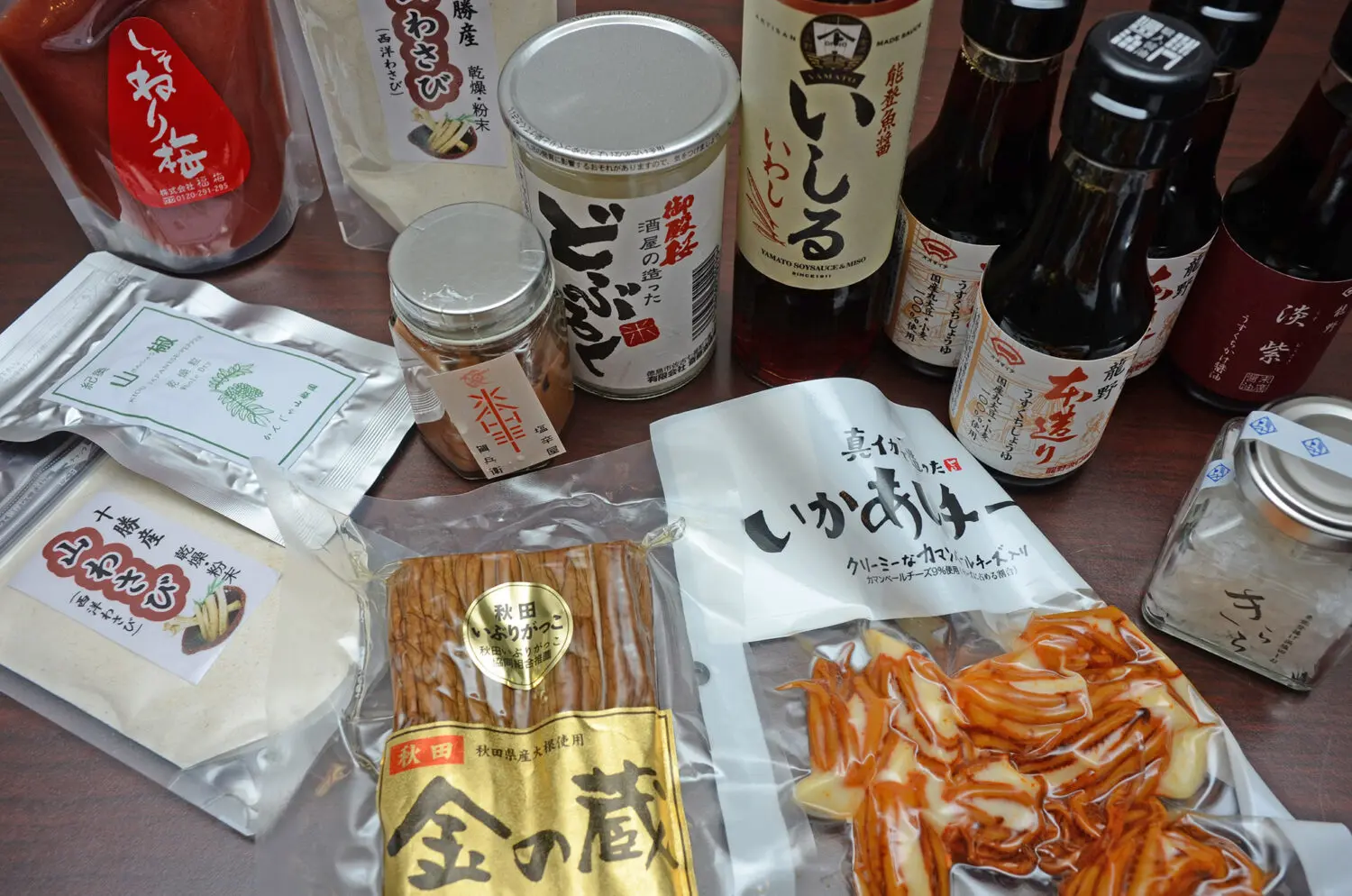 ねり梅、山わさび(粉)、いぶりがっこ、醤油、いしる、など手に入れました!!