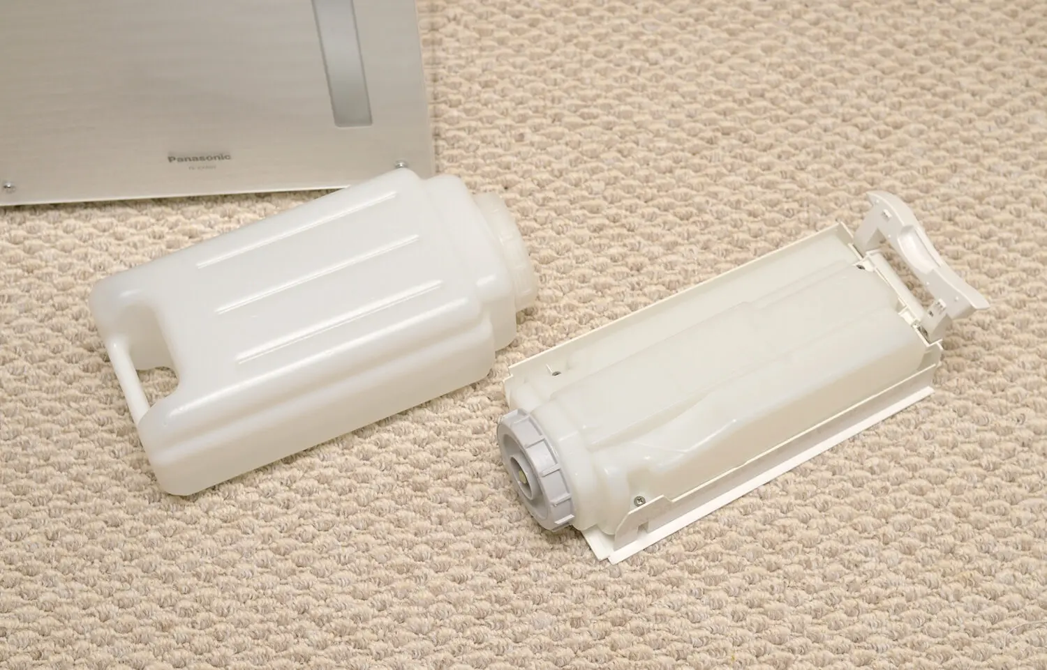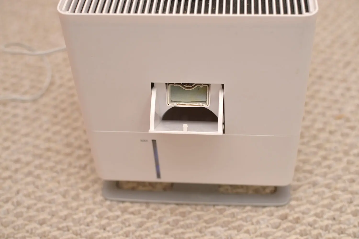 気化式のため水蒸気は出ないので、上から覗くと大型のファンが回りパソコンのような印象を受けます。
