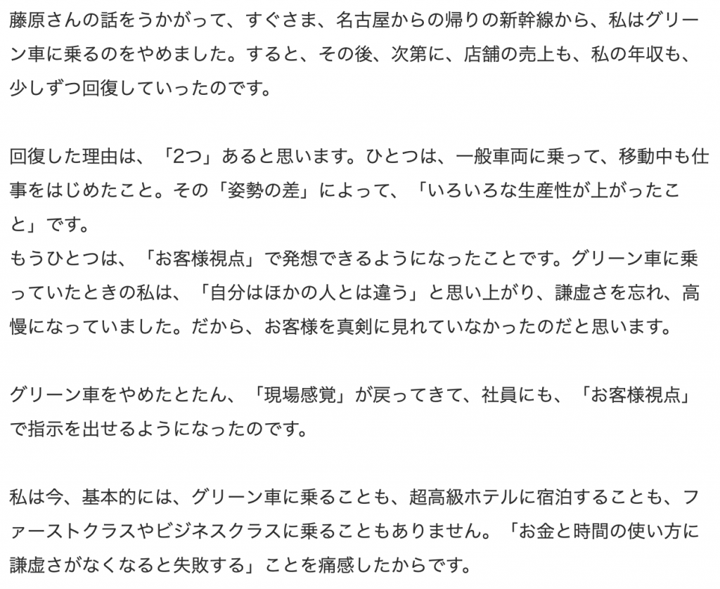 ※一部の話ではグリーン車に乗らずにアパホテルに泊まり、エコノミーに乗って、軽自動車に乗りマクドナルドで昼飯を食べると年収が上がるらしい…。