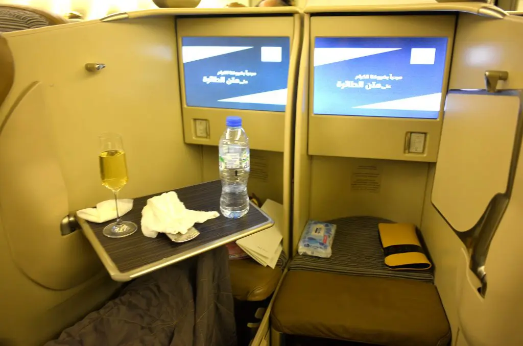 ちなみにアブダビ〜ローマの6時間は別の機材に変更されます。アリタリア航空の直行便の機材と似ていてエコノミークラスのように狭く圧迫感があります。テーブルの取り付けも悪く斜めに傾き食事のサービスもひどいものです。