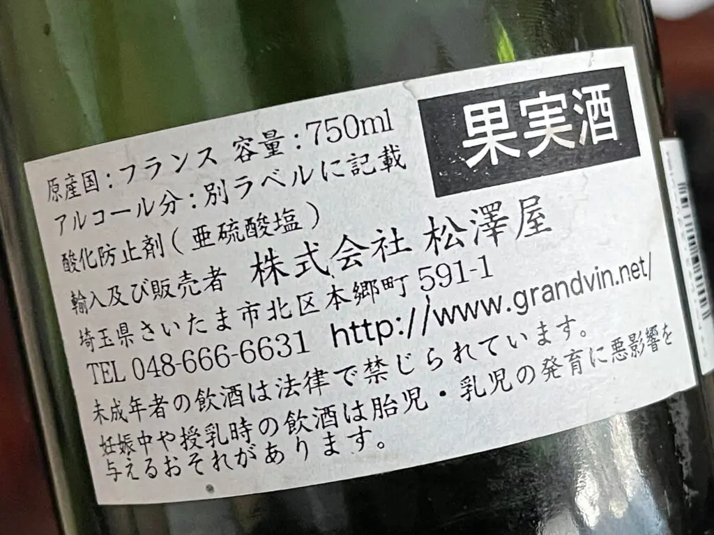 裏返すと、株式会社松澤屋のシールが貼ってあり、そこにはhttps://www.grandvin.net/と現代的な表記があります。