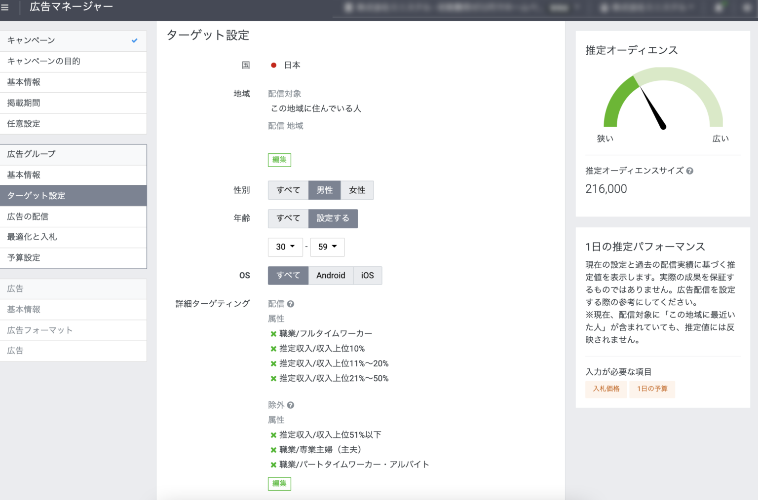 利用者のターゲティングが具体的になっています。年齢層や性別だけでなく、居住地、勤務地、立ち寄った人。