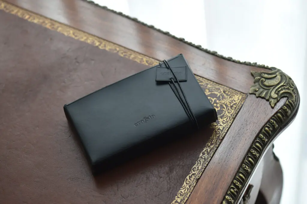 いままでの長い間使える堅固な革製品は、ひと目みて無骨で男っぽいデザインが多かったのですが、このcrafsto(クラフスト)のフラグメントケースは、大手メゾンブランドのように美しい形でありながら革の端の処理なのが丈夫に仕上げられていて、美しさと堅固を融合しているプロダクトといえます。