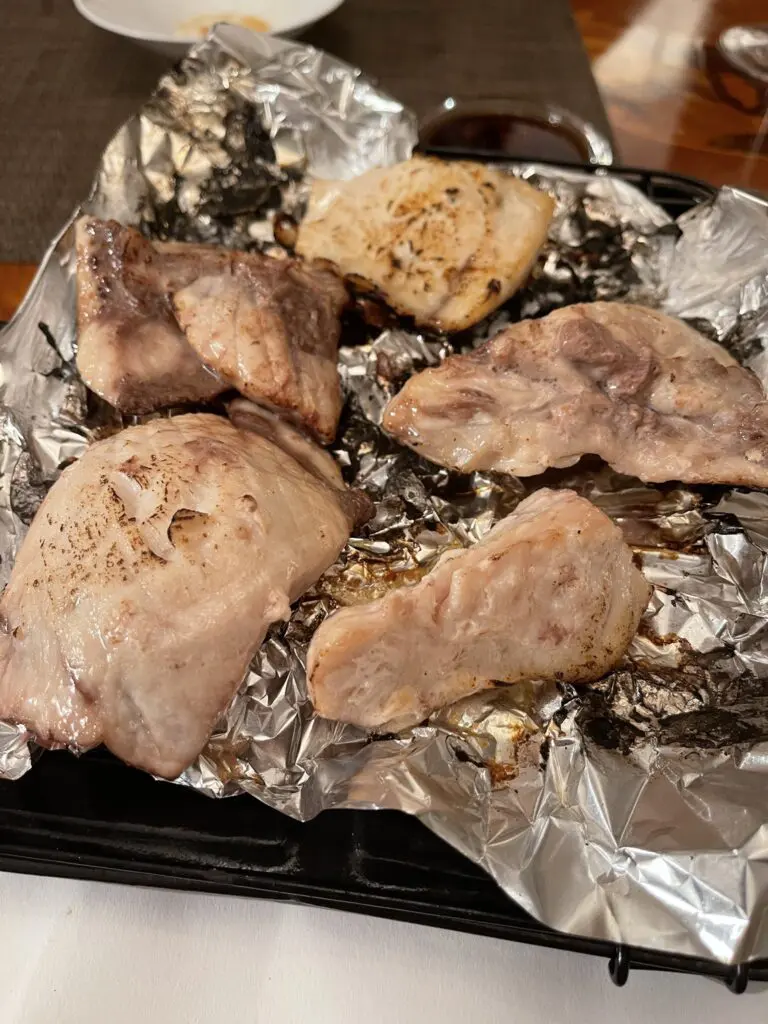SUNTORY 甲州 2018 おじさんが「手本を見せてやる」というので言われるがまま。 確かにこの魚介のスケール感とマッチしていて”正解”に近い。 限りない透明感と雑味のなさ、輪郭のハッキリとしたピュアな甘味が特徴的。 甲州はグリ系品種らしいが、ややシャルドネ臭い。