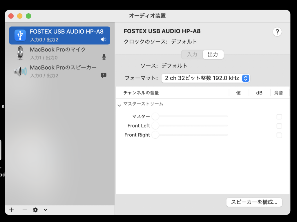 このフォーマットの2ch 32ビット整数 192.0kHzに変更すれば、設定が完了です!