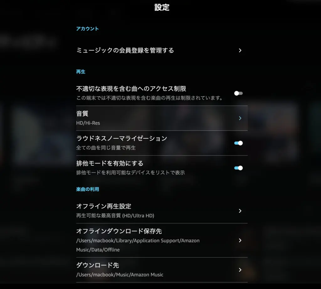 とにかくアマゾンミュージックのソフトを起動して設定画面に移ります。