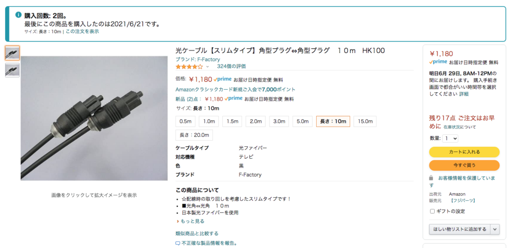 光デジタル出力の難点は実店舗だとケーブルの種類が少なく、数十センチから2メートル程度が最大です。