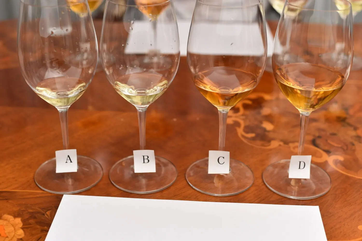 今回は注いだ色で「白ワイン」ということしか分からない状況で、りんりん氏に4種類のワインをレビューしてもらいました。