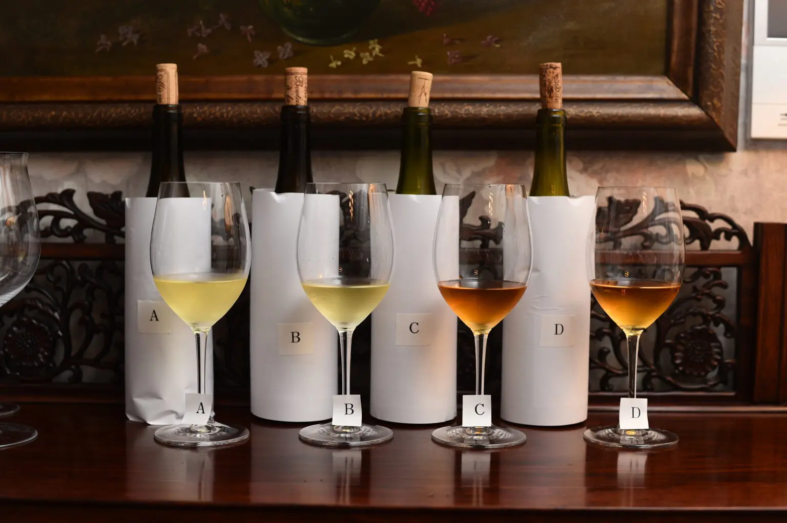 今回は注いだ色で「白ワイン」ということしか分からない状況で、りんりん氏に4種類のワインをレビューしてもらいました。