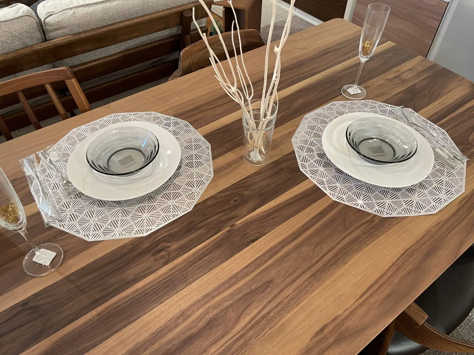 メリットとしては料理の汚れが全くつかないことと、掃除のしやすさがあります。メンテナンスなども無いので、ほとんどのガラステーブルは薄めた中性洗剤でさっと拭くだけで完了です。衛生的です。
