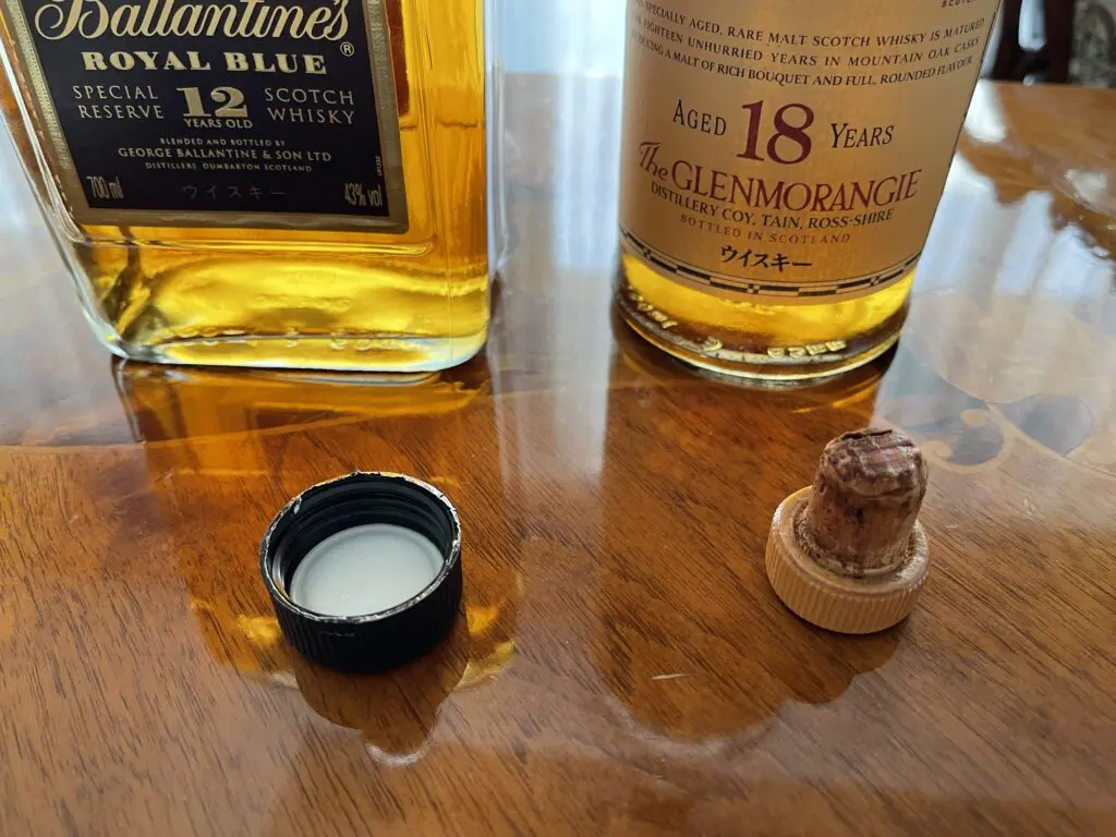 一番安全なのがコルク製です。ウイスキーにニオイが移りにくく、1980年代の流通ボトルを開けても「あれ?すぐ飲めるじゃん!」ということが多いです。