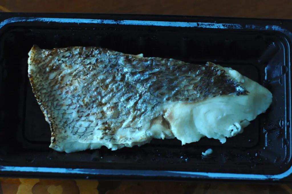 ついでにセブンイレブンで購入した「ふっくら焼き上げた真鯛の藻塩焼き」も食べてみます。