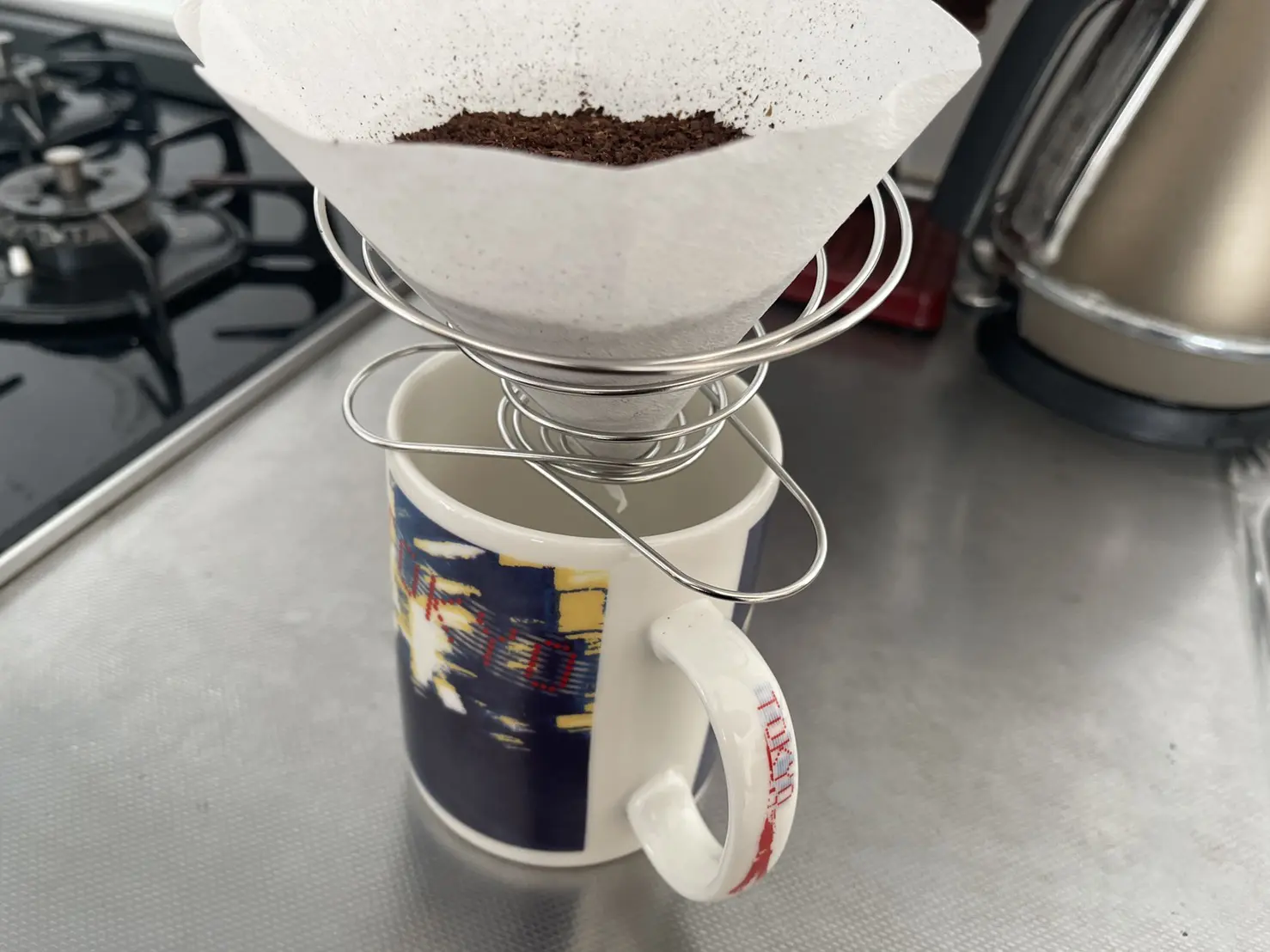 なんのことはない、ハンガーに使われていそうな金属のワイヤーがグルグルになっているドリッパー。